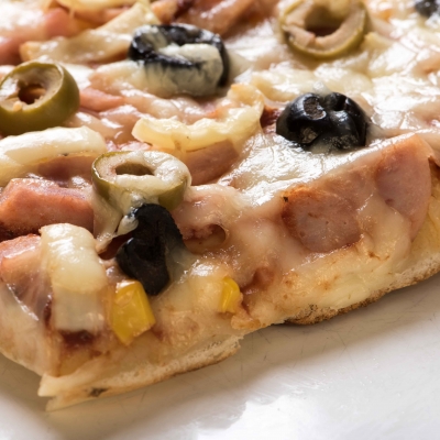 Paradicsomos alap, sonka, olívabogyó, paprika, sajt....