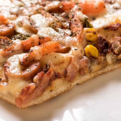 Paradicsomos alap, sonka, bacon, kukorica, paradicsom karika, fü...