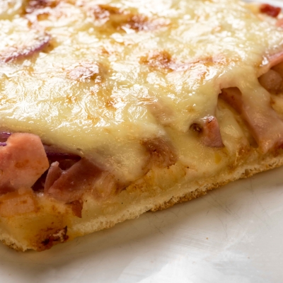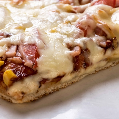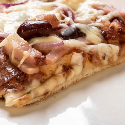 Paradicsomos alap, sonka, bacon ,mozzarella, füstölt sajt, trap...