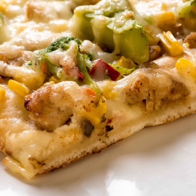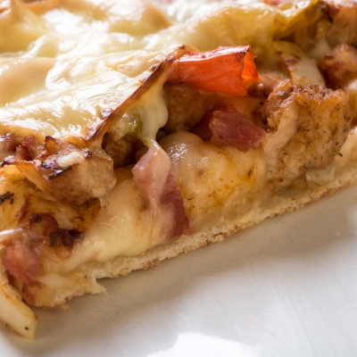 Paradicsomos alap, csirkemell, sonka, bacon , pepperoni, paprika,...