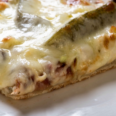 Fokhagymás-tejfölös alap, füstölt sonka, császárszalonna, ...