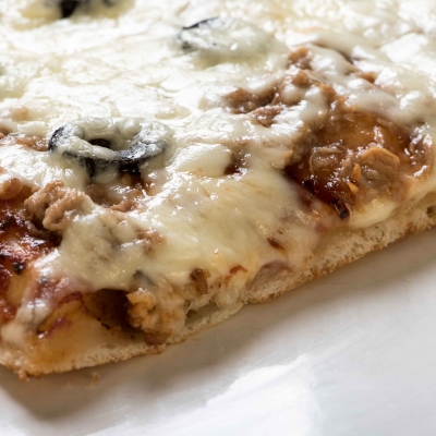 Tejfölös alap, túró, juhtúró, lilahagyma, sonka, sajt....